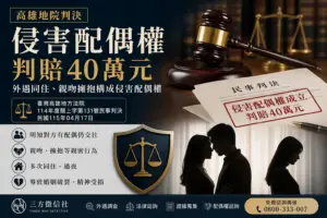 侵害配偶權可以求償多少?高雄地院判賠40萬案例解析